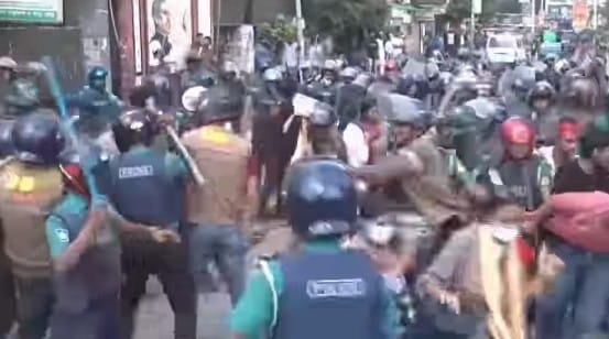 এই সংঘর্ষ ছড়িয়ে পড়ে রয়েলের মোড়ে, সাত রাস্তার মোড়, ফুল মার্কেটের মূল সড়কসহ বিভিন্ন গলিতে। আইন-শৃঙ্খলা বাহিনী সদস্যরা রাবার বুলেট ও টিয়ার গ্যাস নিক্ষেপ করে আন্দোলনরত শিক্ষার্থীদের উপরে। ফুল মার্কেট এলাকা থেকে কয়েকজনকে আটক করে আইনশৃঙ্খলা বাহিনী সদস্যরা।