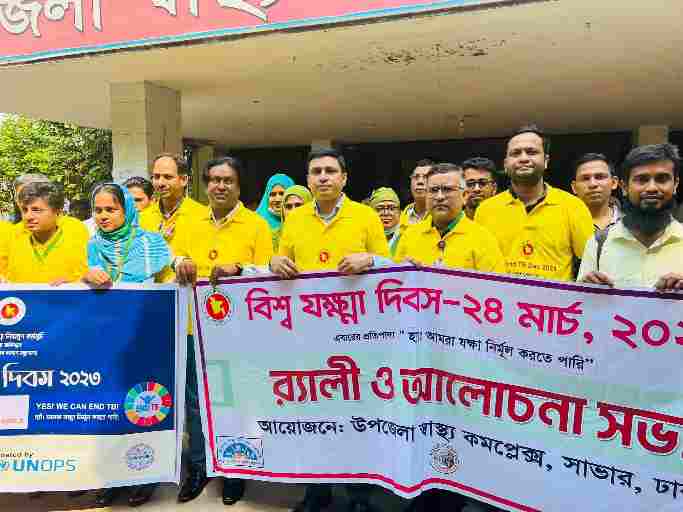 এরই ধারাবাহিকতায় ঢাকার সাভারে উপজেলা স্বাস্থ্য কমপ্লেক্সের আয়োজনে বিভিন্ন এনজিওদের অংশগ্রহণে বৃহস্পতিবার (২৩ মার্চ) সকালে বর্ণাঢ্য র্যালি ও আলোচনা সভা অনুষ্ঠিত হয়।